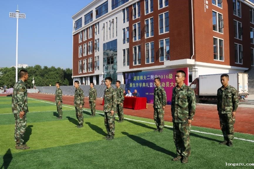 青春飞扬,绿草如茵。8月29日上午,湖南师大二附中开学典礼暨2016级新生军训动员大会在田径场举行。校长张胜利、副校长肖建新、校长助理余柏青、肖荣在主席台就座,2016级12个班全体师生参加大会。大会由学生处主任王虎主持。